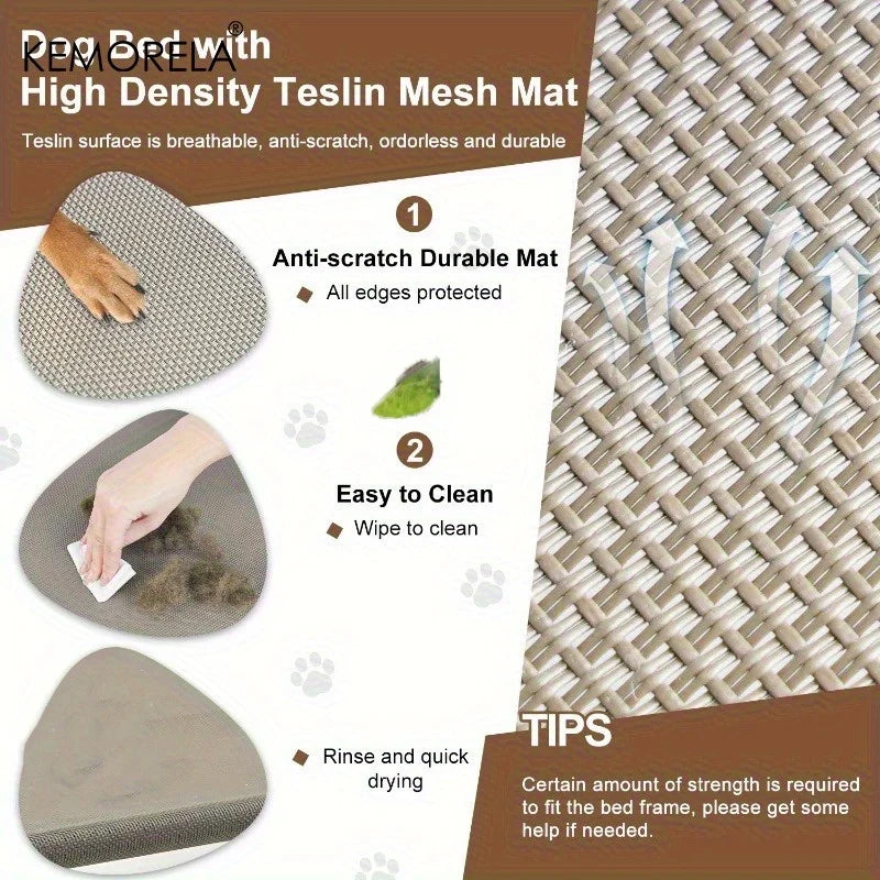 Large Elevated Dog Bed with Detachable Canopy Portable Indoor & Outdoor Pet Cot for Camping & Beach Fabric for Medium/Small Dogs